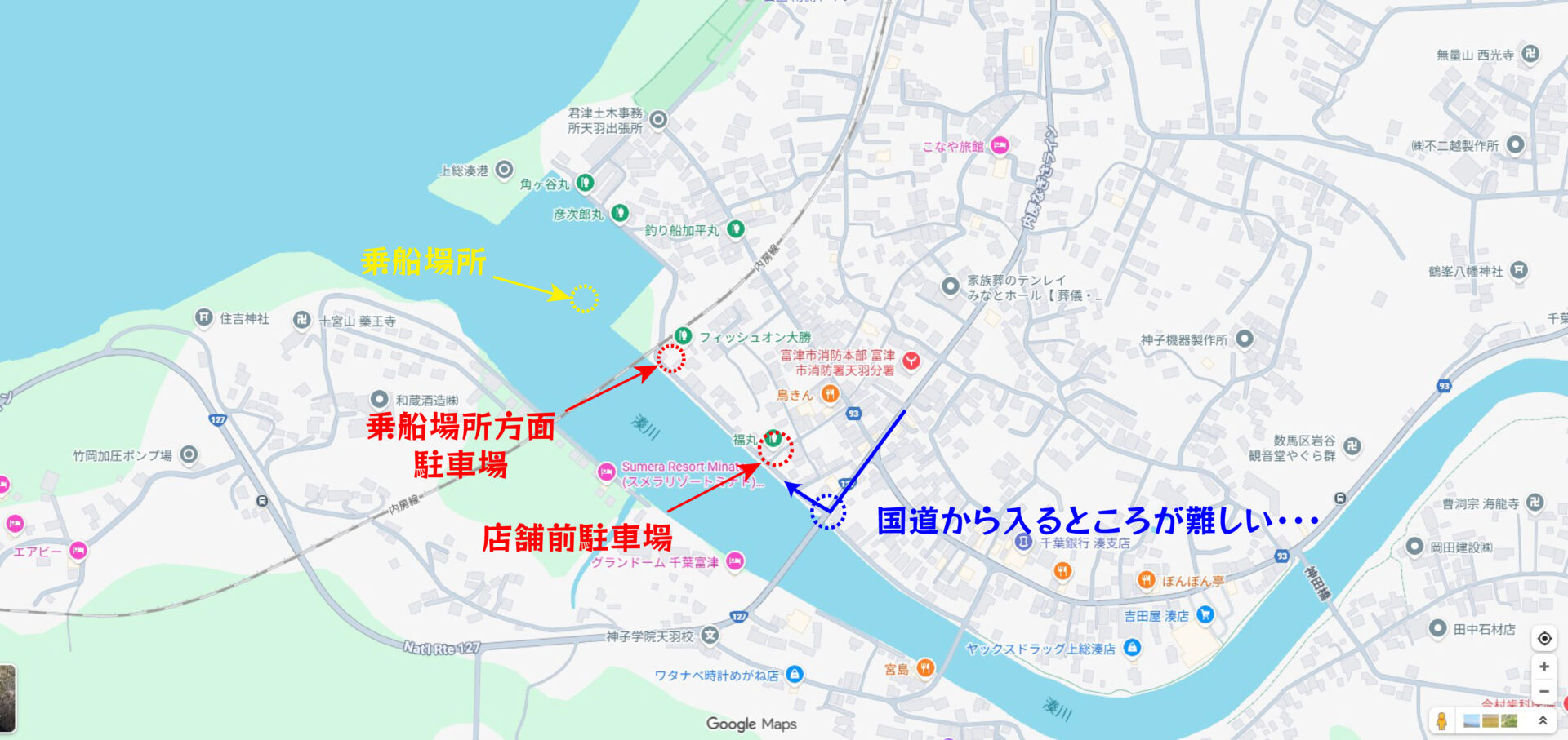 ただ「福丸」は受付、駐車場、乗船場所がそれぞれ少し離れていて、