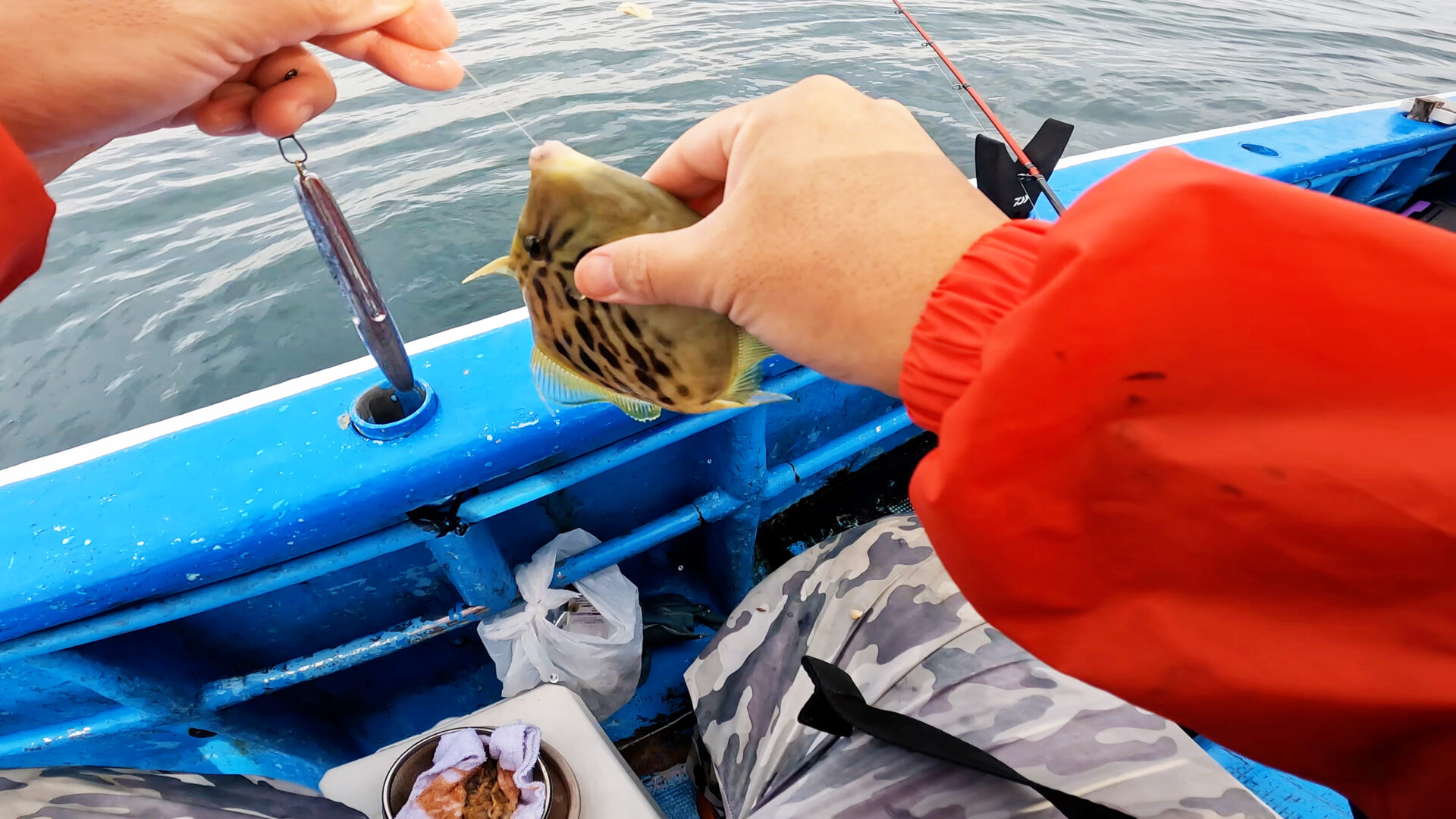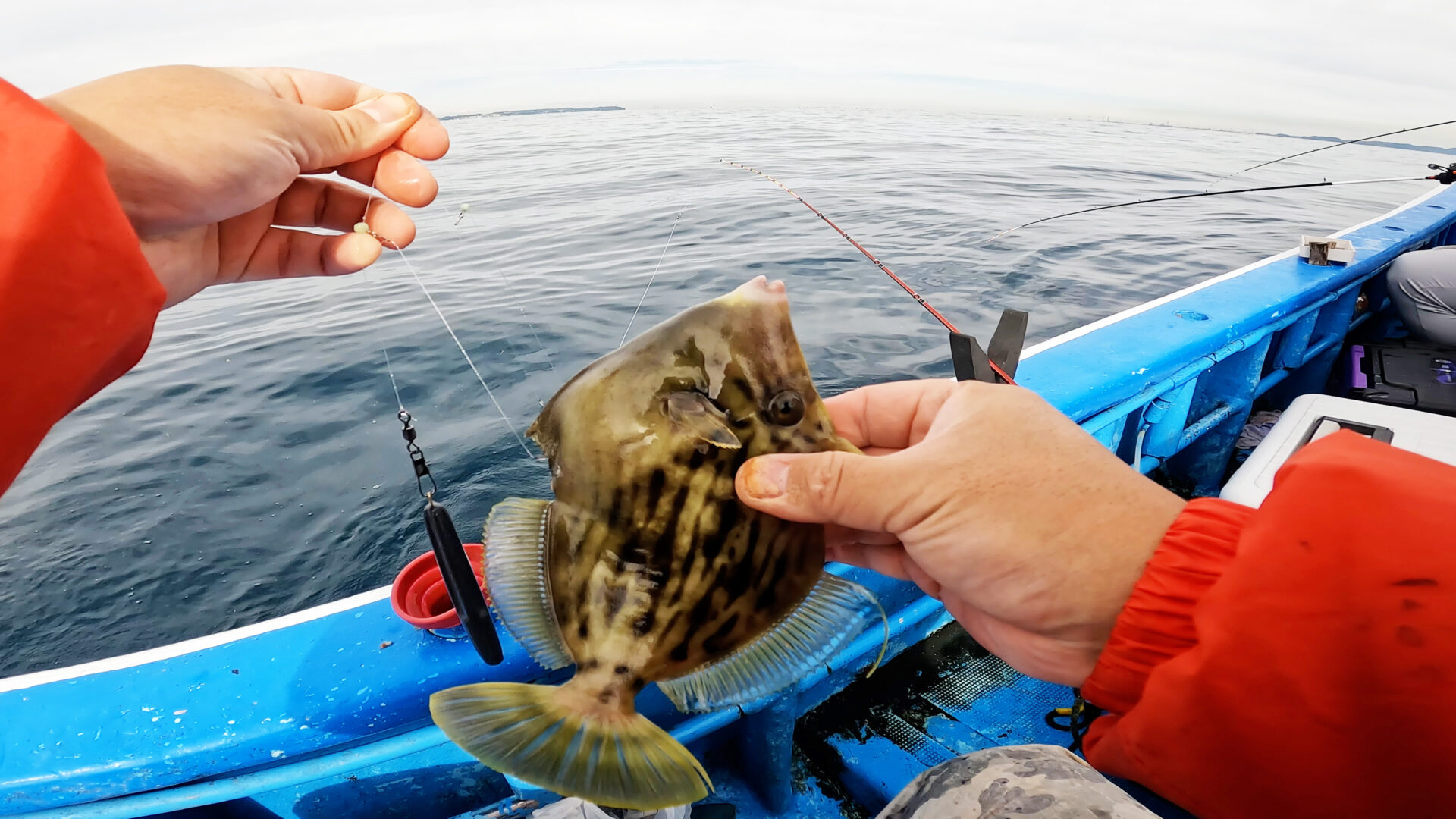ここでは雰囲気が一変し、25cm前後の良型カワハギがコンスタントにヒット。
