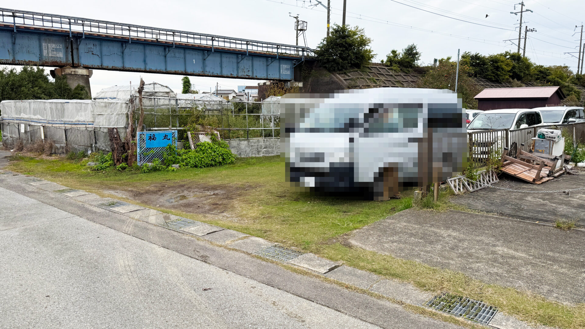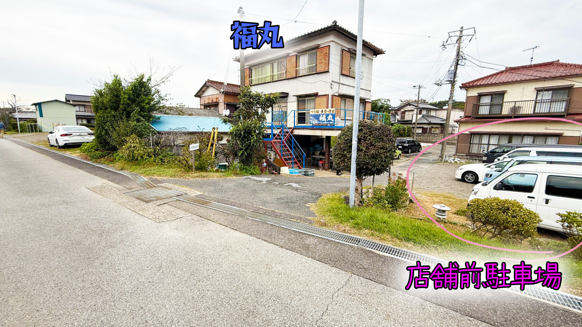 店舗前の道路から『福丸』さんの店舗が見えます